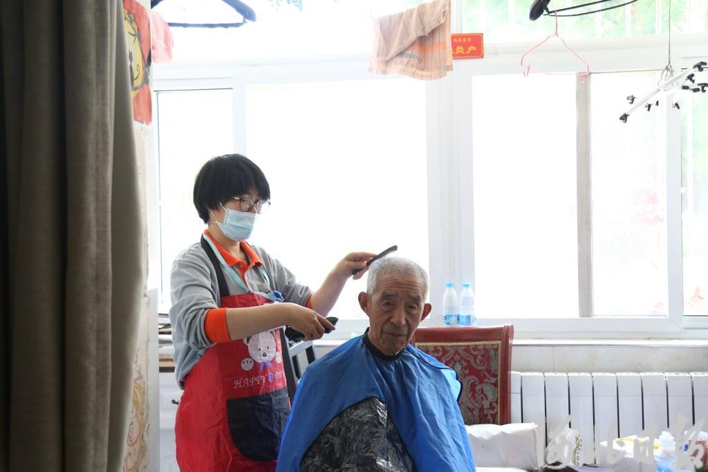 图为唐山市路北区机场南楼王永发老人通过智慧养老服务平台“一键下单”,享受专业养老服务人员上门理发服务。通讯员李昂 摄