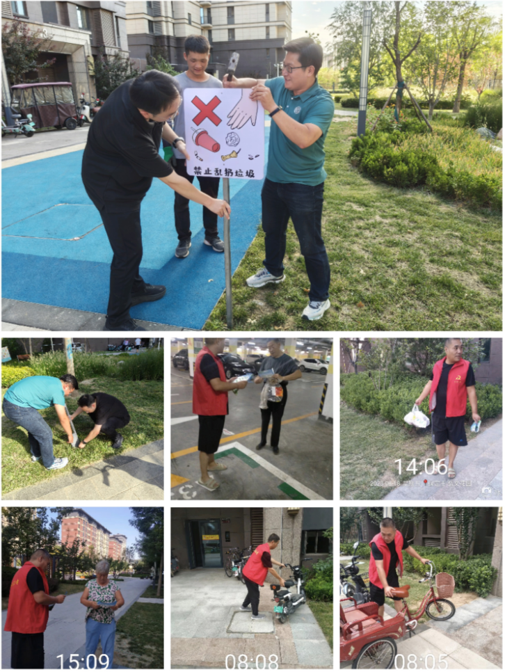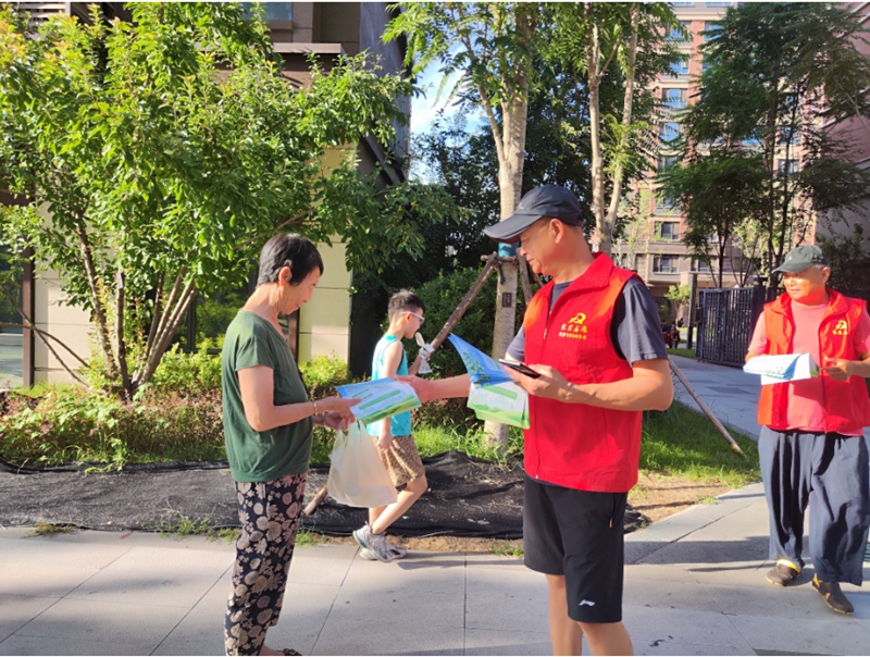 8月17日,南文社区组织党员志愿者参与“垃圾不落地”活动。志愿者们在小区内发放“美丽小区”倡议书,并引导居民爱护环境,争当环保先行者,尊重环卫工人劳动成果,积极参与“美丽小区”行动。