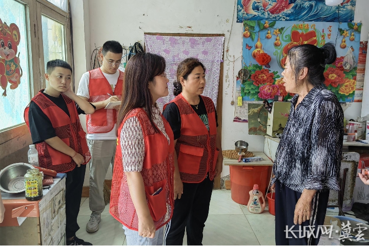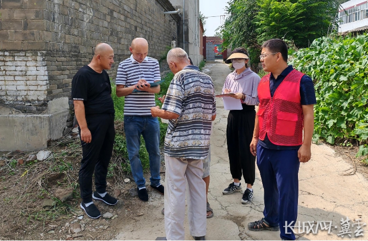 包联干部和村民志愿者一起进行房屋排查。魏荣亮 摄
