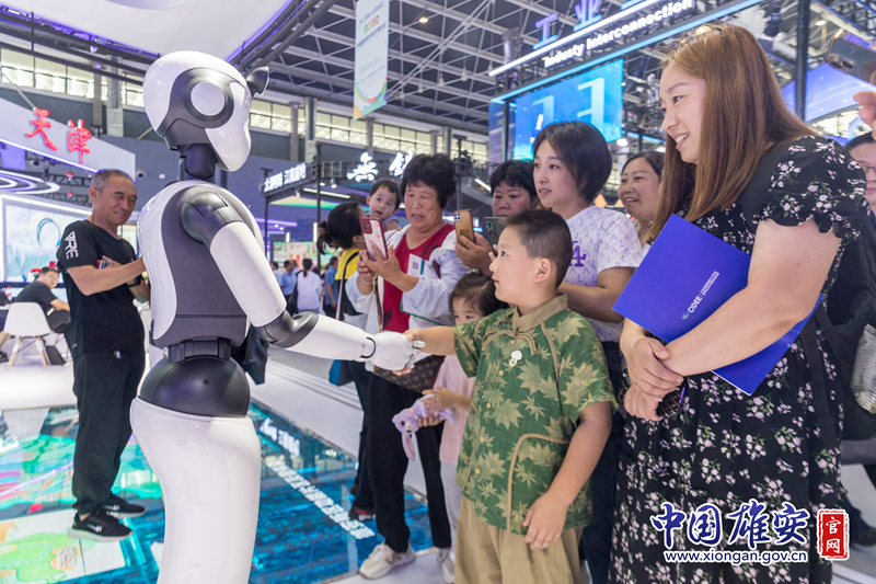 在2023中国国际数字经济博览会雄安展区,参观者与机器人互动。中国雄安官网牛思佳 摄