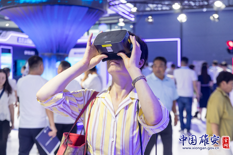 在2023中国国际数字经济博览会雄安展区,参观者使用VR眼镜观看白洋淀美景。中国雄安官网牛思佳 摄