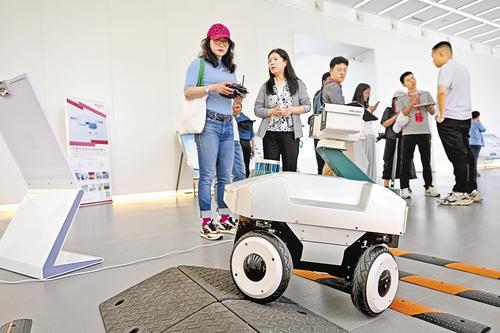 中试基地展示大厅内,一条展示挂轨上,巡检机器人来回移动,下方的装置四处扫描,随时发现问题。“这款机器人可以在电力、化工、铁路、隧道等场景下代替人工巡检。”北京普龙科技有限公司副总经理于泽文介绍,人工巡检具有时段性,非巡查时间出现问题不能及时发现,但巡检机器人可以更快发现问题并及时传输给后台解决。