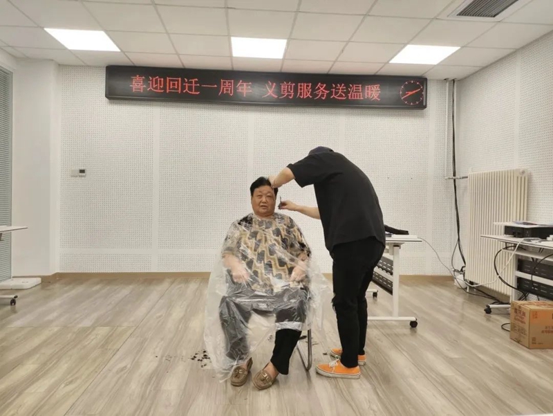 邀请远航坊小区志愿者贾振华为居民义剪。