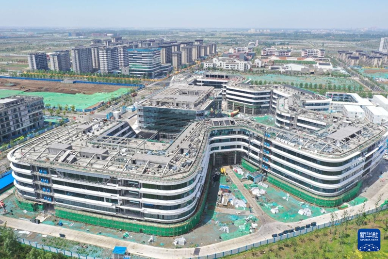 中国卫星网络集团有限公司雄安新区总部正在加快建设。(7月4日摄,无人机照片)新华社记者 朱旭东 摄