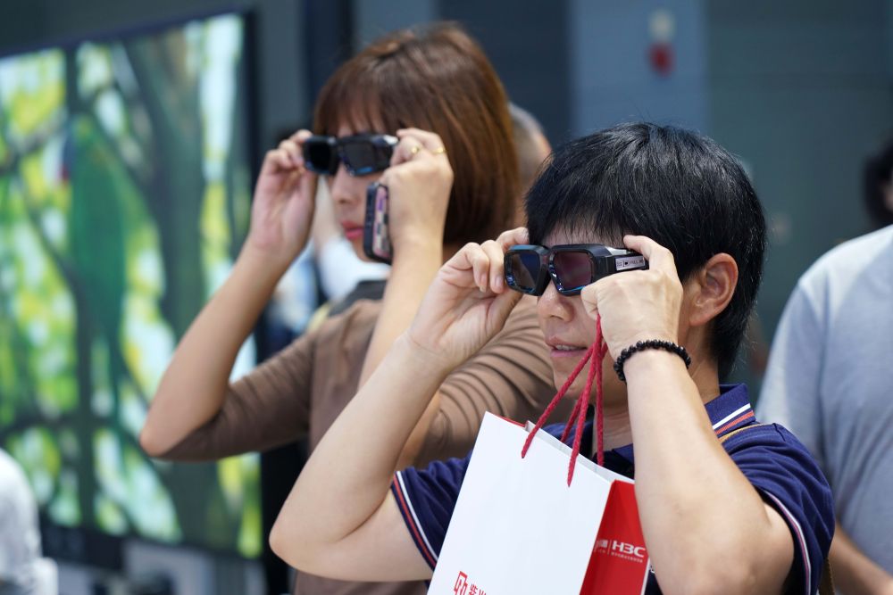 9月6日,参观者在2023中国国际数字经济博览会上体验主动式3D眼镜。新华社记者骆学峰 摄