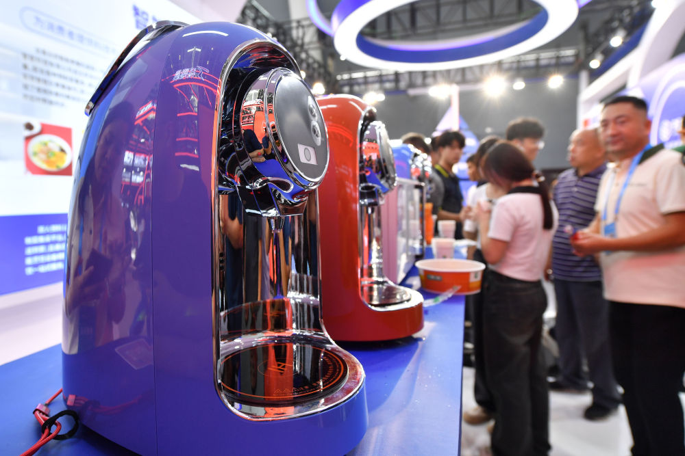 9月7日,参观者在2023中国国际数字经济博览会上参观体验智能餐厨机。新华社记者骆学峰 摄
