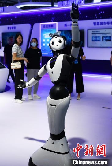 9月7日,在2023中国国际数字经济博览会雄安新区展示区,智能机器人正在跳舞。中新网记者翟羽佳 摄