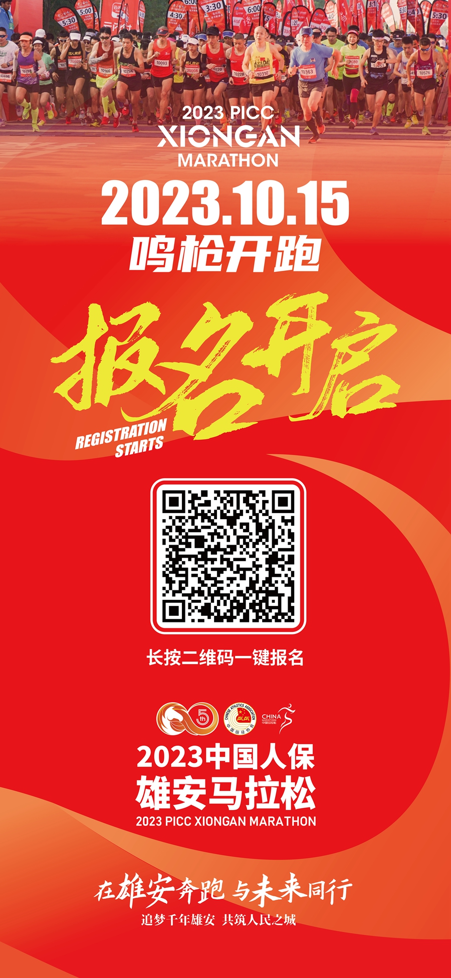 10月15日7:30,2023中国人保雄安马拉松将在雄安城市计算中心鸣枪开跑。赛事由中国田径协会认证,河北省体育局指导,雄安新区管理委员会主办,雄安新区宣传网信局承办,雄县人民政府、容城县人民政府、安新县人民政府、容东管理委员会、河北省田径协会、中国雄安集团有限公司协办,北京中迹体育管理有限公司运营,中国人民保险集团股份有限公司冠名。