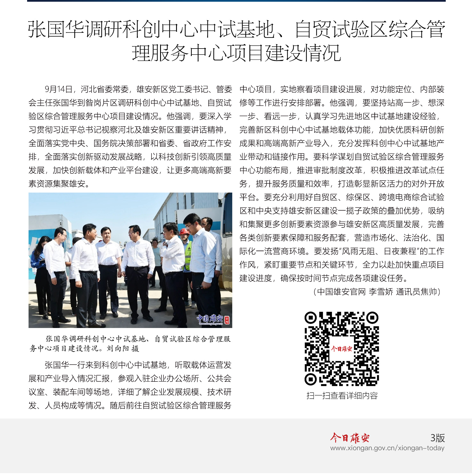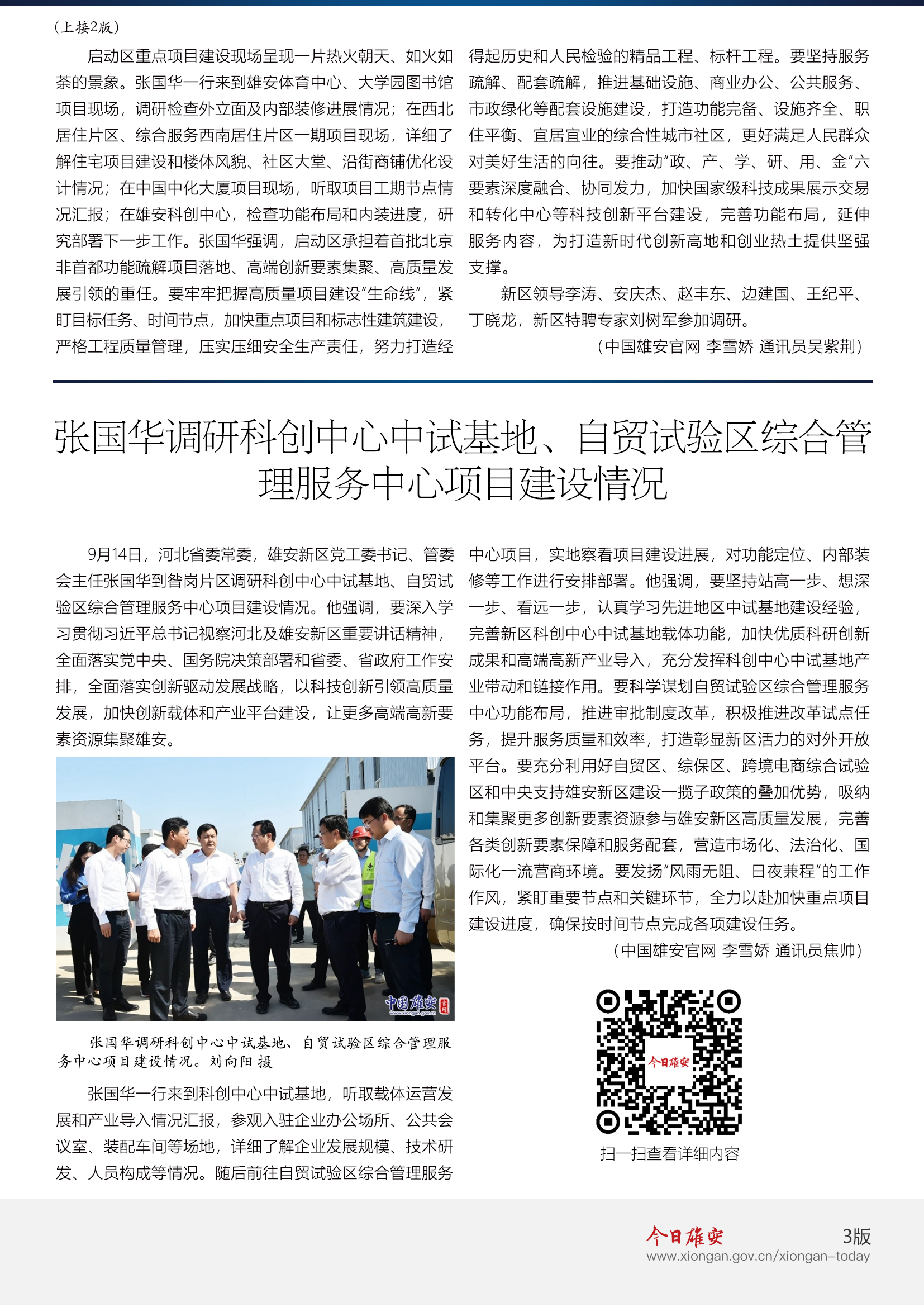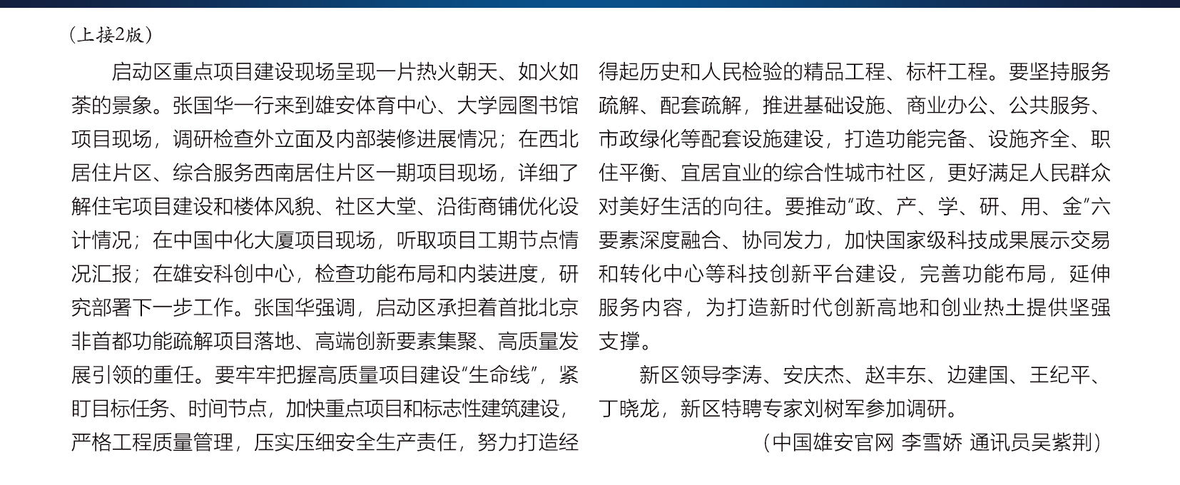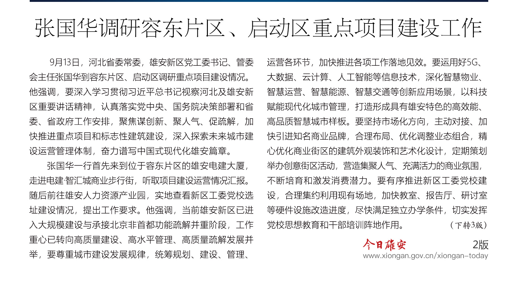 时政播报丨张国华调研容东片区、启动区重点项目建设工作