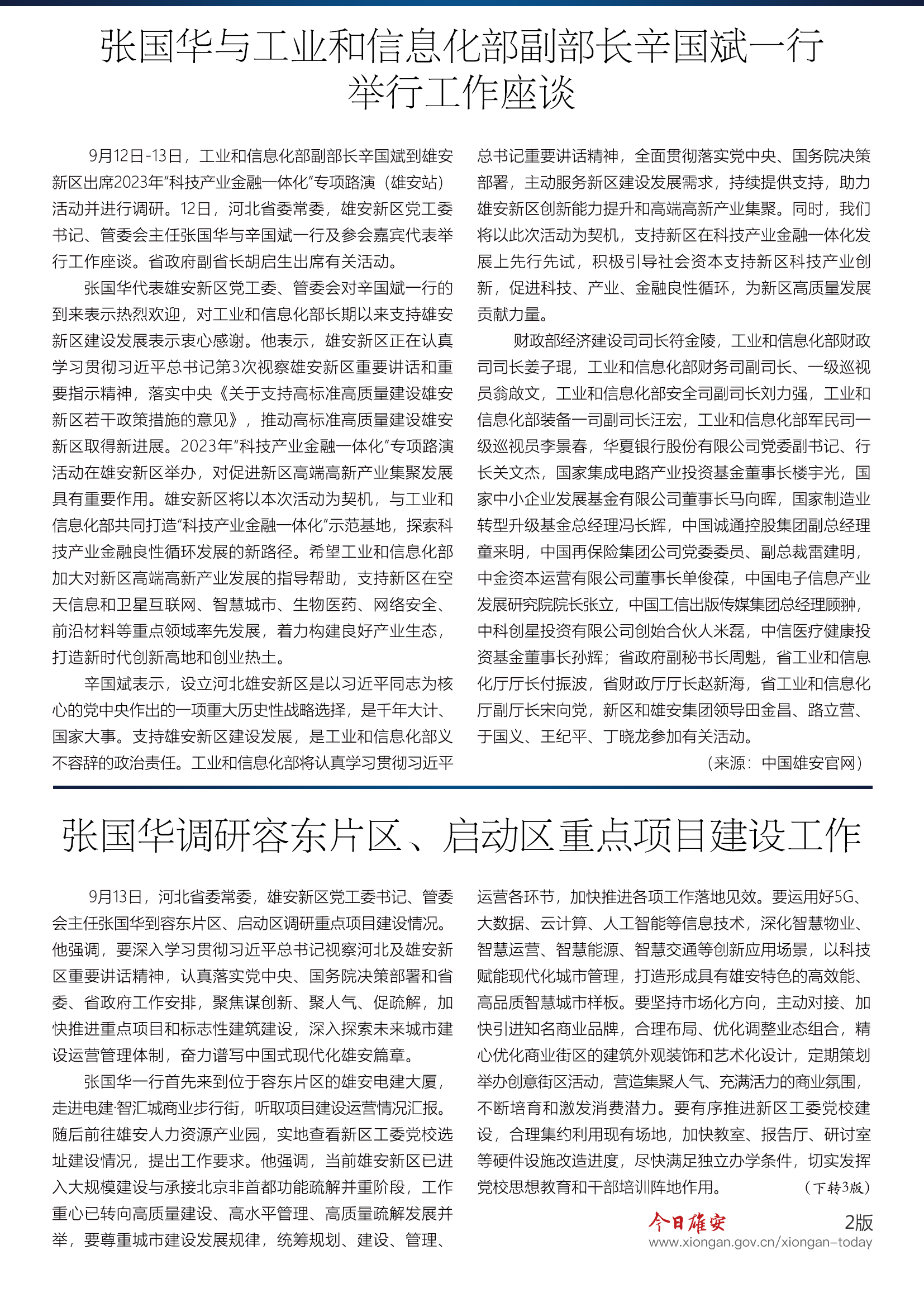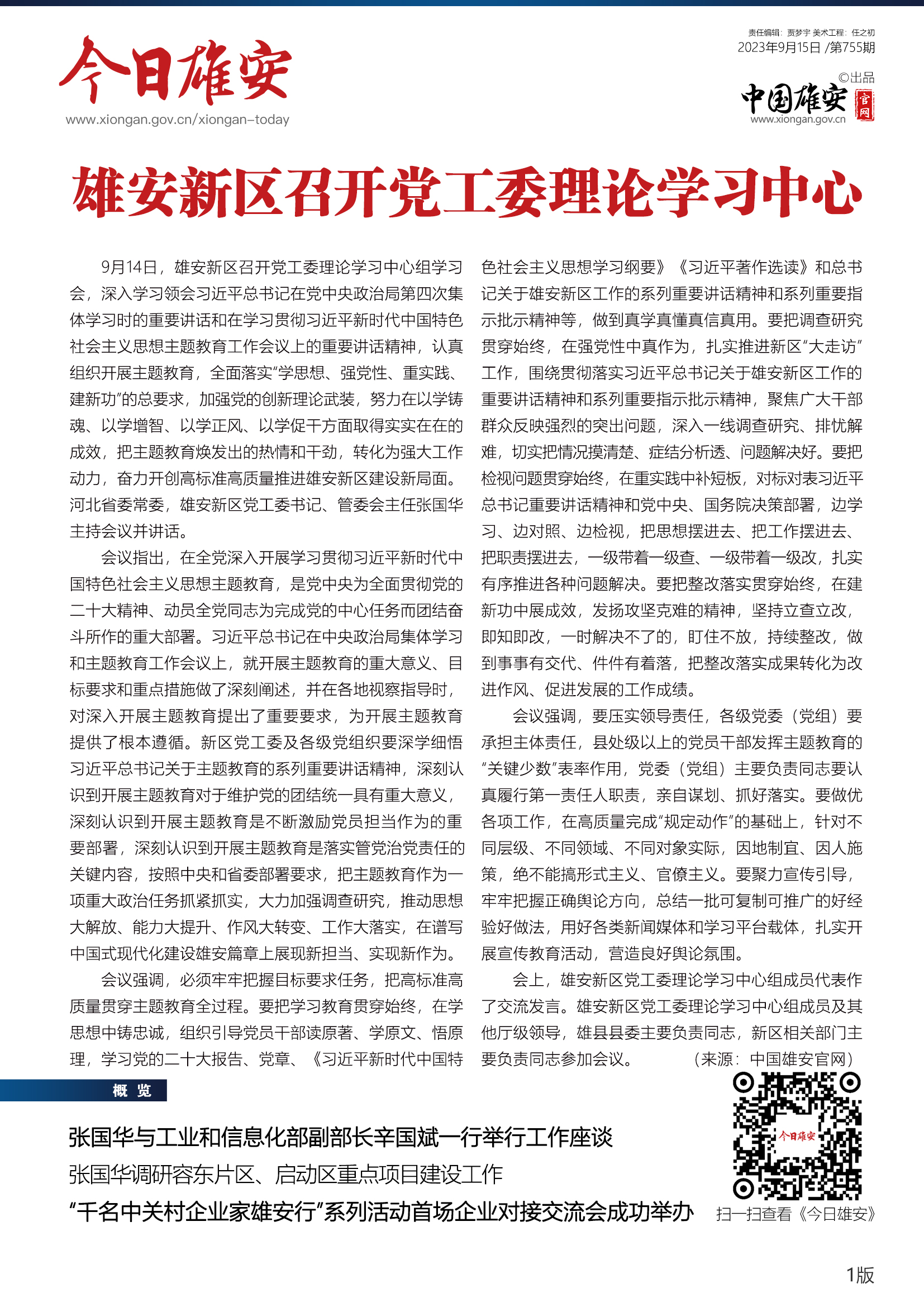 《今日雄安》 2023年9月15日 第755期