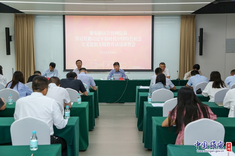 会议指出,在全党开展集中学习教育,是我们党推进自我革命的重要途径,也是一条重要经验。深入开展学习贯彻习近平新时代中国特色社会主义思想主题教育,是党中央为全面贯彻党的二十大精神、动员全党为完成党的中心任务而团结奋斗所作的重大部署,是深入推进新时代党的建设新的伟大工程的重大部署,对于党和国家事业具有重要战略意义,对于高标准高质量建设雄安新区具有重要政治意义,对于做好宣传网信、文旅体育工作具有重要现实意义。新区宣传网信局全体党员干部要深入学习贯彻习近平总书记重要讲话精神和党中央、省委决策部署,认真落实好新区主题教育部署会议的要求,深刻领会习近平新时代中国特色社会主义思想的精神实质和丰富内涵,以高度的政治责任感、良好的精神状态、求真务实的作风,开展好主题教育,切实把学习成果转化为推动工作取得实效的强大动力,为高标准高质量建设雄安新区作出新的更大贡献。