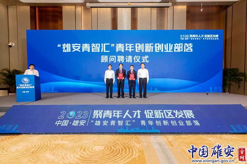 启动仪式现场,侯贵松、李涛为“雄安青智汇”青年创新创业部落顾问中国工程院院士、宁夏大学机械工程学院院长马玉山以及中国发明协会党委书记余华荣发放聘书。中国雄安官网牛思佳 摄