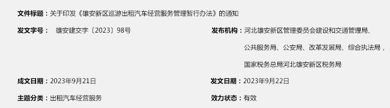 雄安新区巡游出租汽车经营服务管理暂行办法