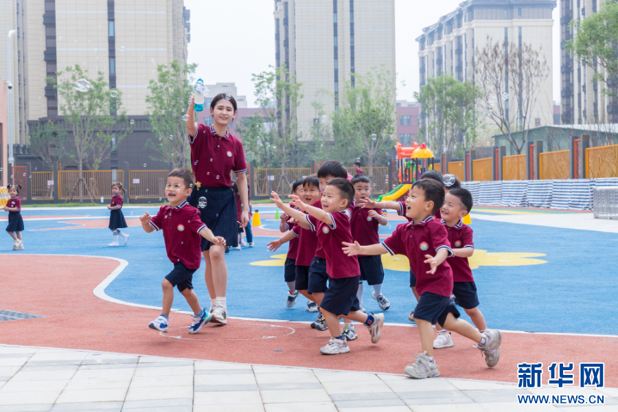 雄安新区的儿童在幼儿园内玩耍。新华网发 牛思佳摄