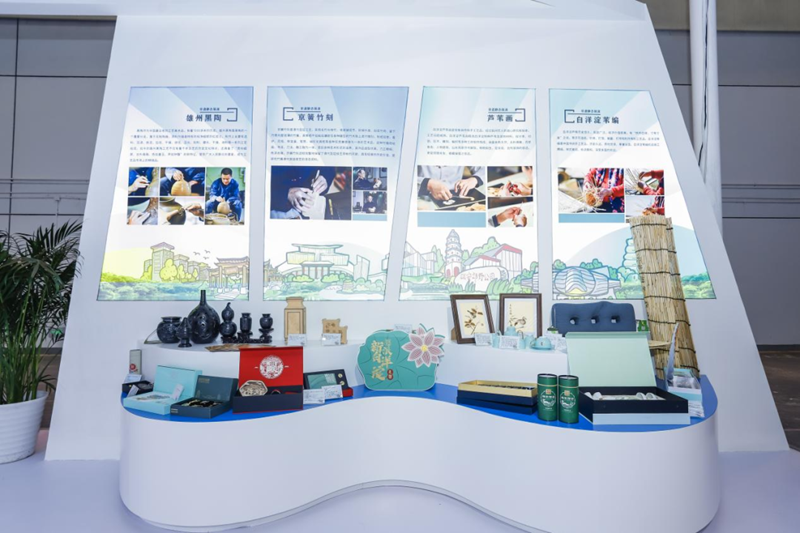 展区内集中展示了新区非遗、文创产品,上架雄州黑陶、京簧竹刻、芦苇画、白洋淀苇编、荷叶茶、“雄安青”瓷器、“莲说”文具套盒、HELLO雄安、雄安锦绣山河图冰箱贴等新区热门文旅产品。同时,通过文旅地图触屏互动和赠送礼物形式向现场游客宣传推广新区文旅资源和最新建设成果。