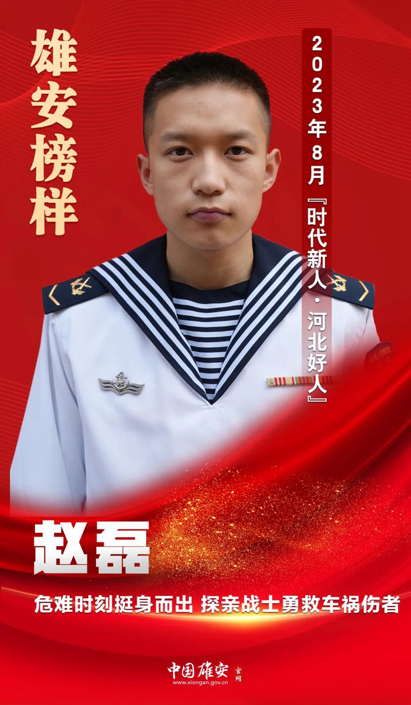 作为一名人民子弟兵,赵磊在群众遭遇危难时挺身而出,用自己的实际行动践行着为人民服务的初心和使命。2023年7月,赵磊受聘为雄县2023年征兵宣传形象大使;入选8月“时代新人·河北好人”。