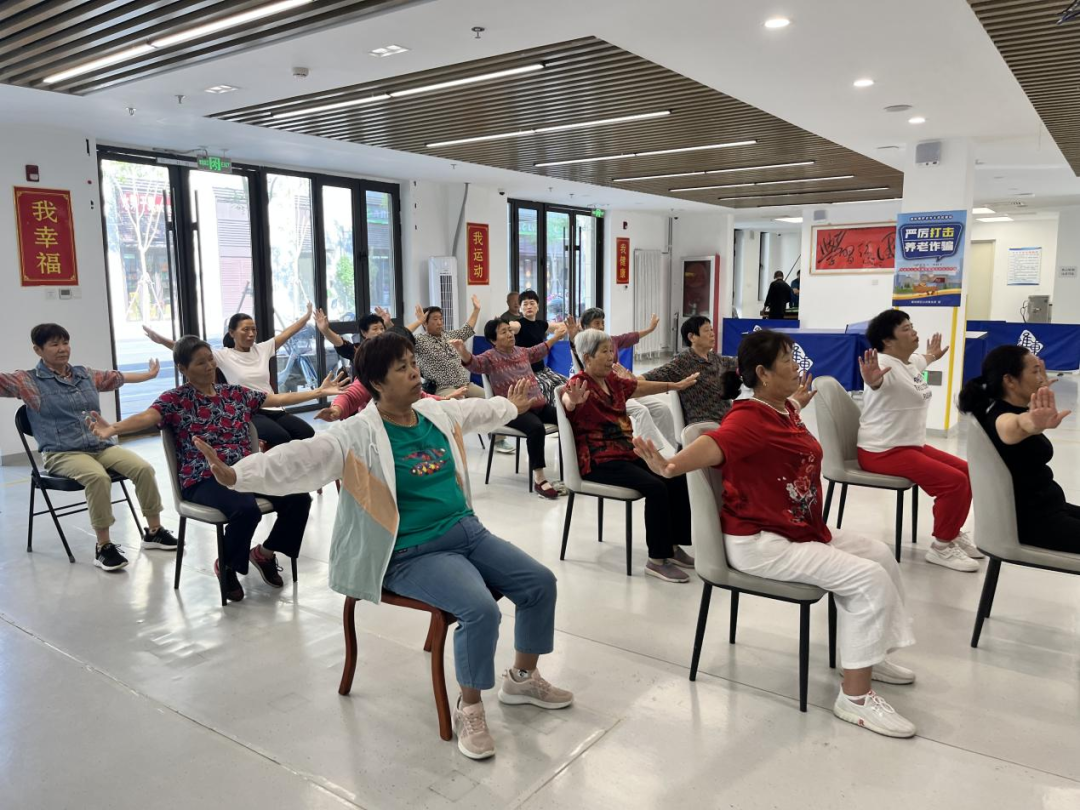 为丰富社区老年人的精神文化生活,提高老年人的身体素质,9月26日,爱景社区养老驿站开展老年“椅上瑜伽”健身活动。