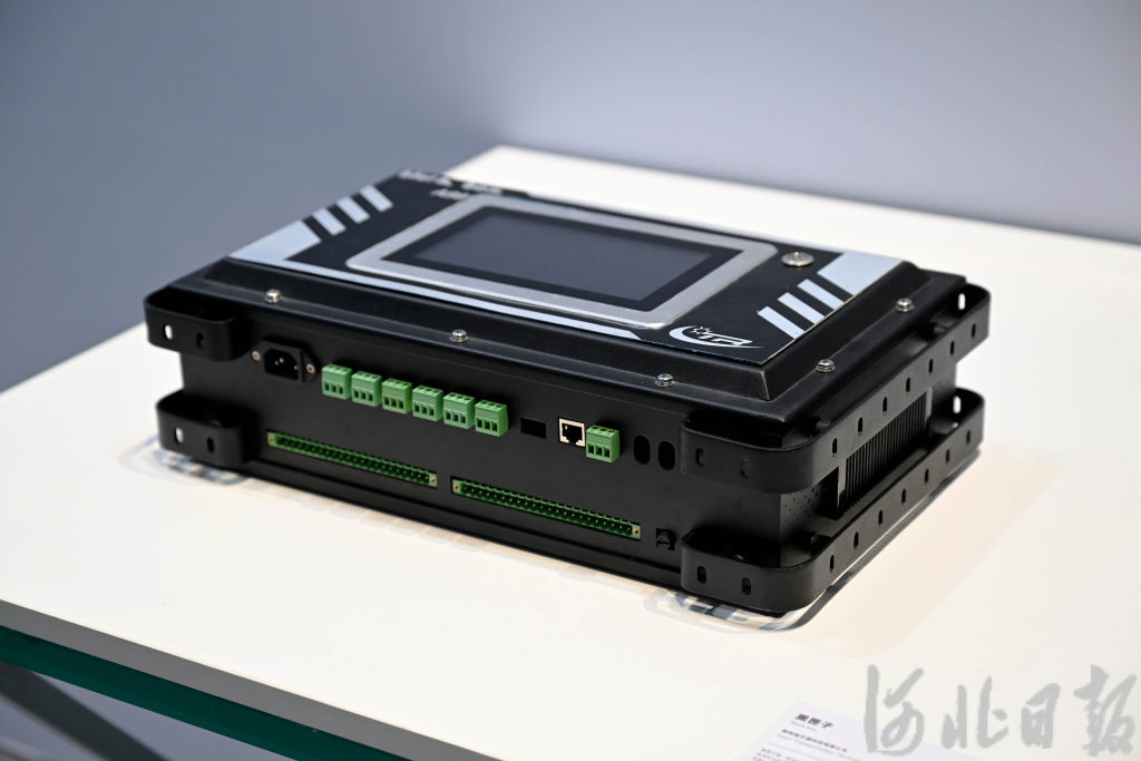 从外表看,它不太显眼,是一个黑色金属盒子,长44厘米,宽26厘米,高12厘米,上面是工控显示屏,一侧是各类数据线的绿色接口。