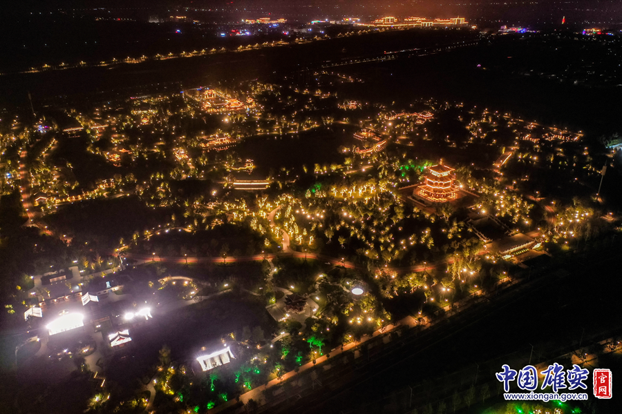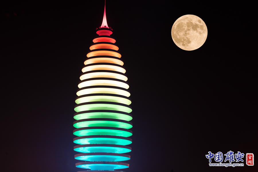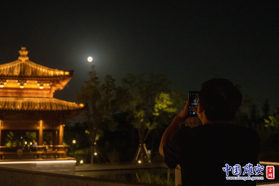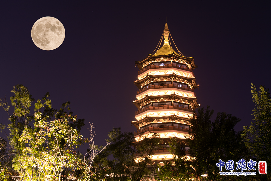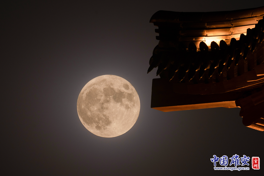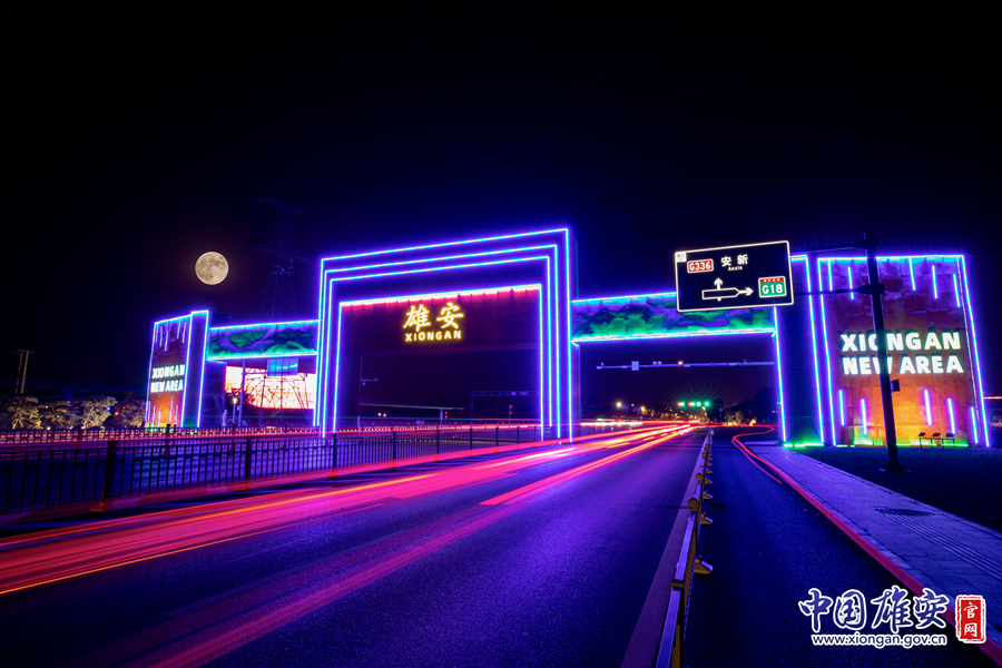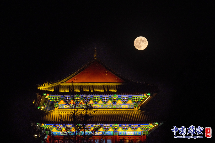 皓月当空,与巍峨的雄安牌楼相互辉映,别有一番意境。