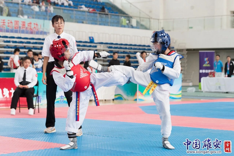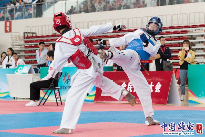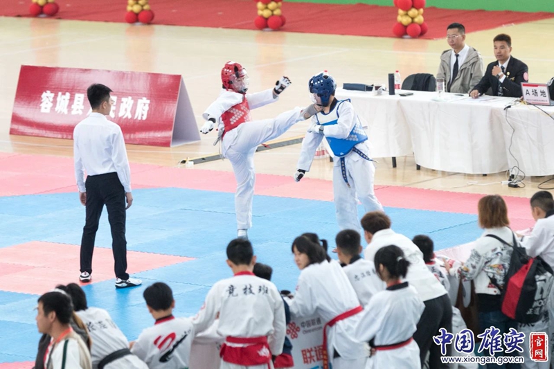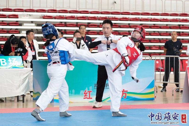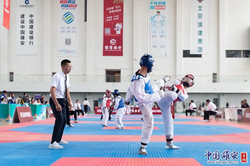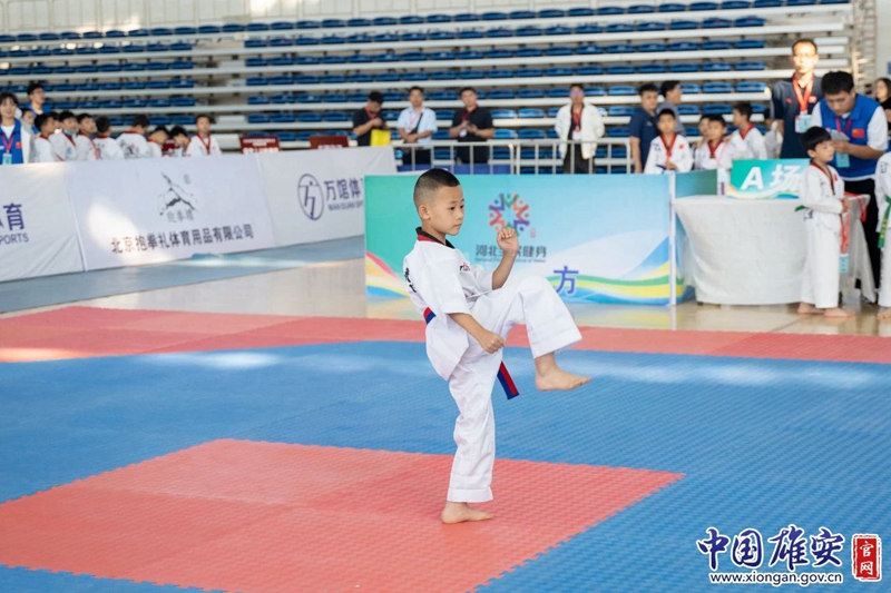 本次比赛内容共三个方向,分别为品势比赛、竞技比赛和快腿王比赛。图为比赛现场。中国雄安官网李鑫 摄