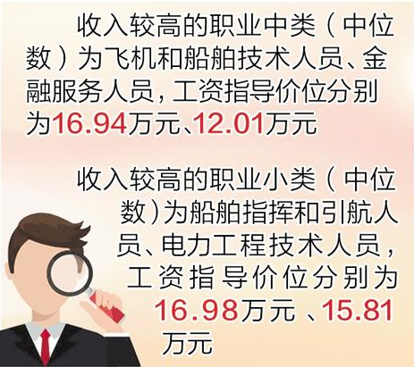 记者10月8日从河北省人社厅获悉,根据《关于建立企业薪酬调查和信息发布制度的通知》有关要求,省人社厅发布河北省2022年部分职业工资指导价位信息。其中,收入较高的职业中类(中位数)为飞机和船舶技术人员、金融服务人员,工资指导价位分别为16.94万元、12.01万元;收入较高的职业小类(中位数)为船舶指挥和引航人员、电力工程技术人员,工资指导价位分别为16.98万元、15.81万元。