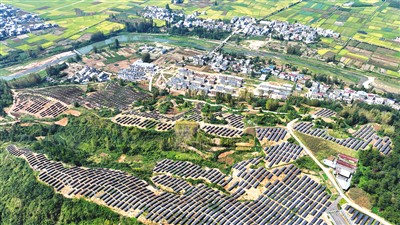 湖北省十堰市房县充分利用光能资源优势,发展光伏发电产业,使之成为当地财政增收的贡献大户。图为房县红塔镇邓营村光伏发电基地。张启龙 摄(人民视觉)