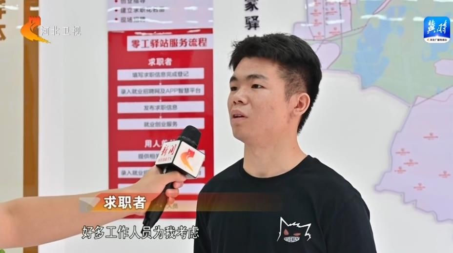 求职者:不出门就能了解到我想看到的工作环境,工作人员(也会)帮助我去选择适合我的工作,然后我就来(这里)面试了,结果面试成功了。