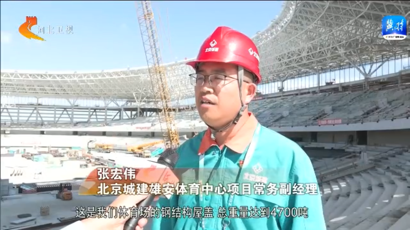 北京城建雄安体育中心项目常务副经理 张宏伟:这是我们体育场的钢结构屋盖,总重量达到4700吨,施工时在地面上组装完成,整体一次性提升到位,这种施工工艺在全国大型体育设施建设中属于首创。