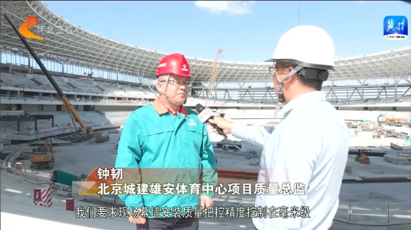 北京城建雄安体育中心项目质量总监 钟韧:我们要求现场幕墙安装质量把控精度控制在毫米级,首先测量标高误差不能超过五毫米,原材加工误差不超过一毫米,现场安装施工误差不能超过两毫米,这就是我们说的毫米级的质量(精度)控制。