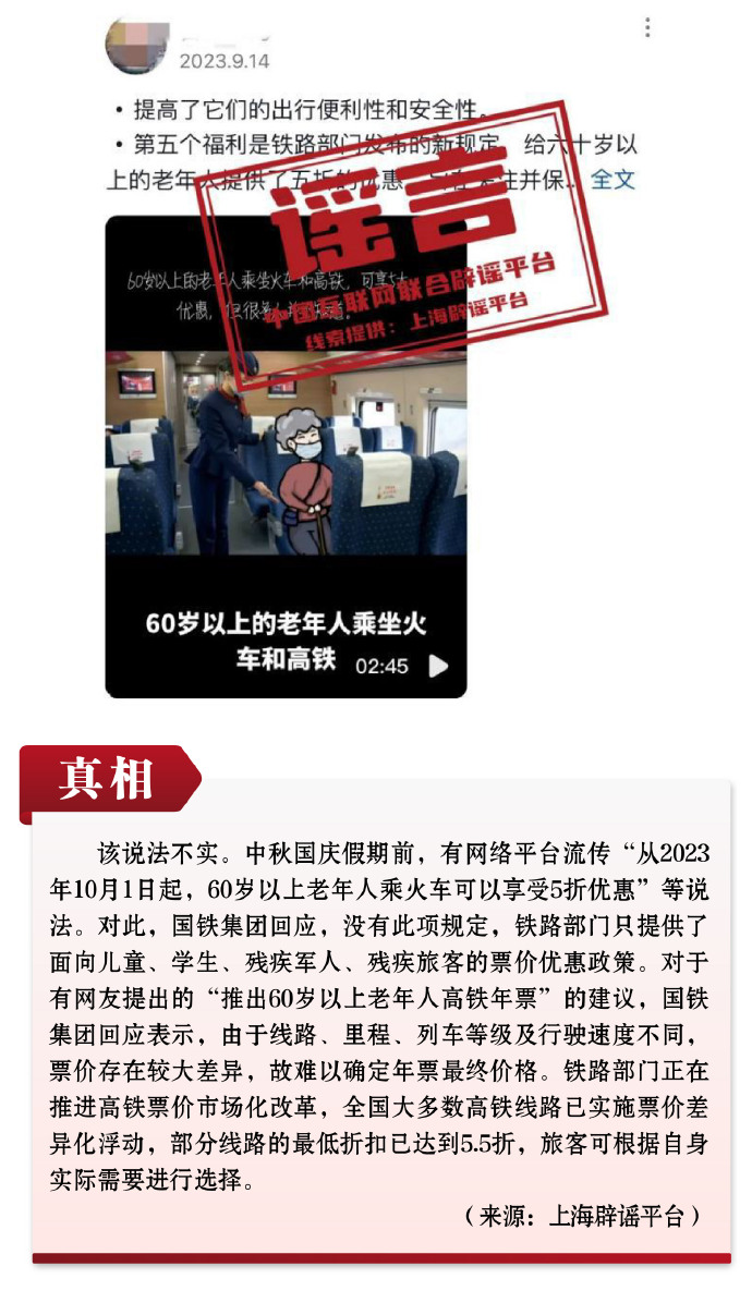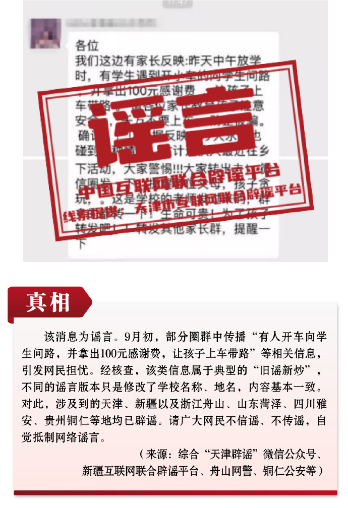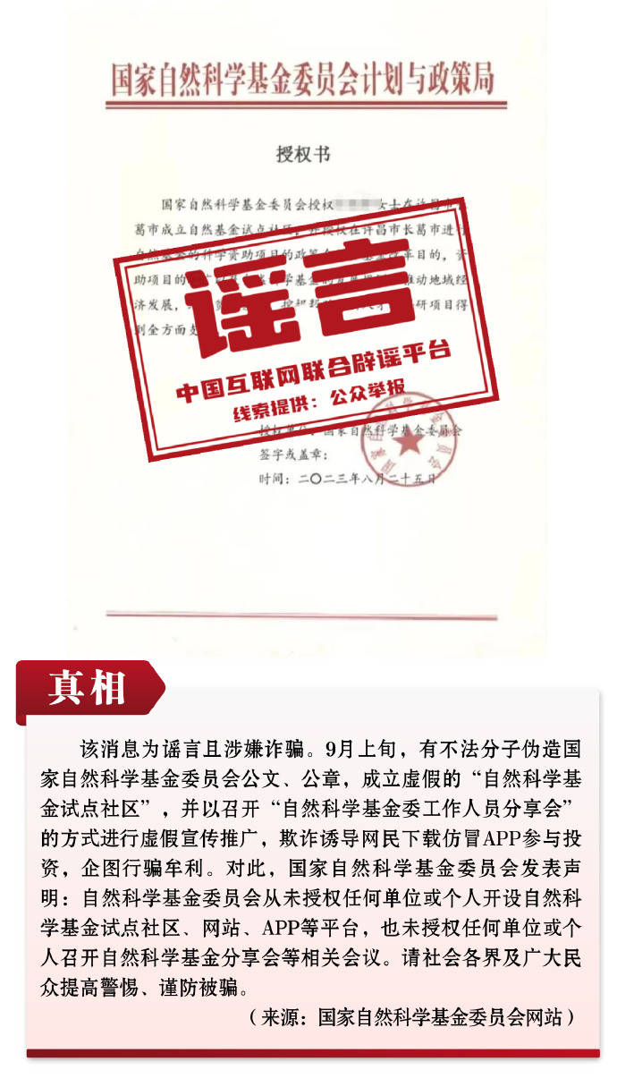 国家自然科学基金委员会成立“试点社区”?多地发生“拿100元骗孩子上车带路”事件?今年国庆后老年人可半价购买火车票?北京市房山区一河道内惊现碎金?大连核辐射值超出预期?中国互联网联合辟谣平台盘点9月热传谣言,遏制谣言传播空间,净化网络生态,营造风清气正的网络环境。