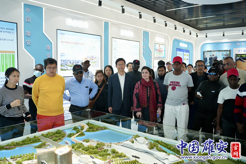 雄安新区党工委委员、党政办主任王纪平介绍了新区规划建设情况,表示设立河北雄安新区,是以习近平同志为核心的党中央深入推进京津冀协同发展作出的一项重大决策部署,是千年大计、国家大事。6年多来,雄安新区坚持先规划后建设、先地下后地上、先植绿后建城等一系列新理念,一座现代化新城正在拔地而起。今年5月10日,习近平总书记第三次到雄安新区考察,称赞新区取得的成绩“堪称奇迹”“殊为不易”,明确新区工作重心已经转向高质量建设、高水平管理、高质量疏解发展并举,为高标准高质量建设雄安新区指明了前进方向、提供了根本遵循。今天来访的都是各国青年精英,希望大家更多关注雄安、了解雄安、宣传雄安,积极推动雄安与各国深化地方合作和友好交流。