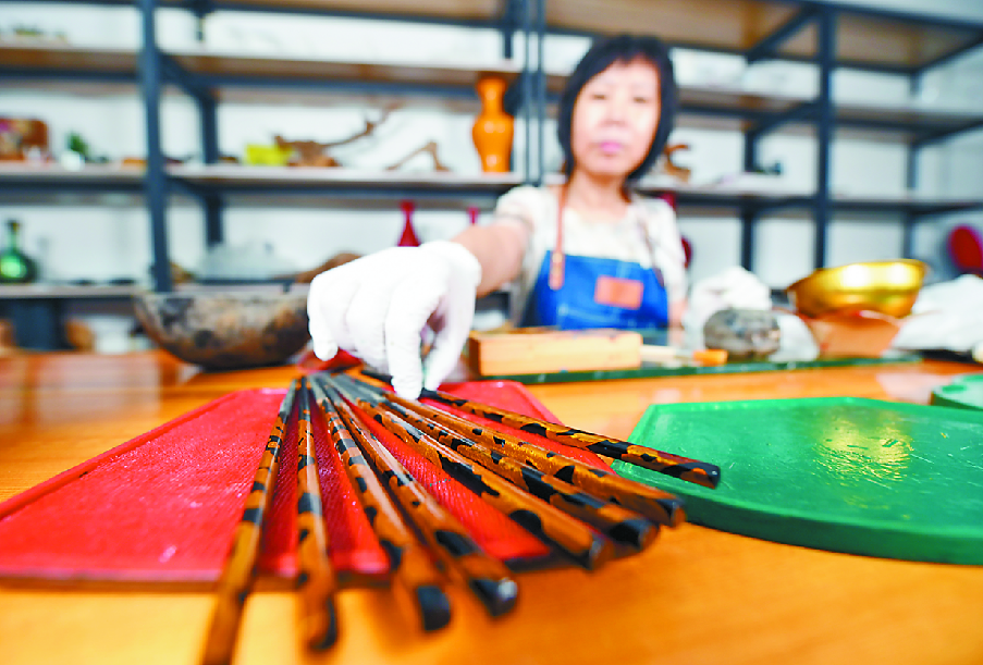 南尖塔镇南甸村省级非遗传承人许晓芳加工半成品筷子。通讯员孙宝宇 摄