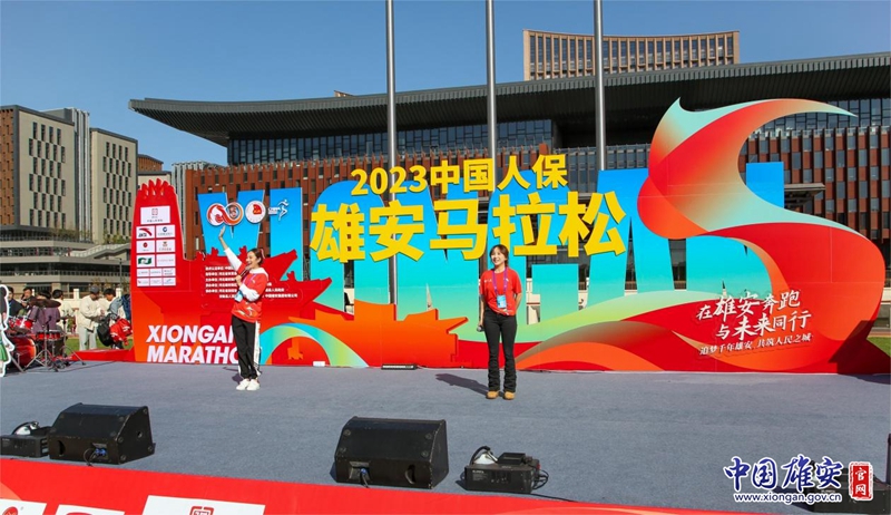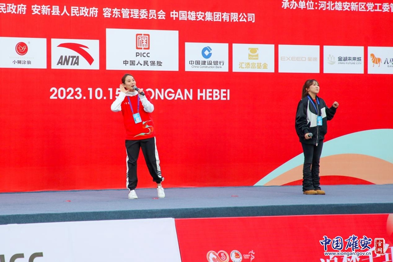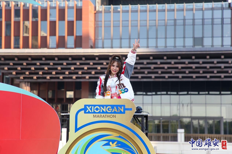 开赛前,第19届杭州亚运会男子篮球项目体展导演王思瑶和中文播报员郑心怡作为神秘嘉宾,在起跑点惊艳亮相,她们热情洋溢的歌曲《奢香夫人》更是点燃全场,也预示了这场雄安马拉松的与众不同。