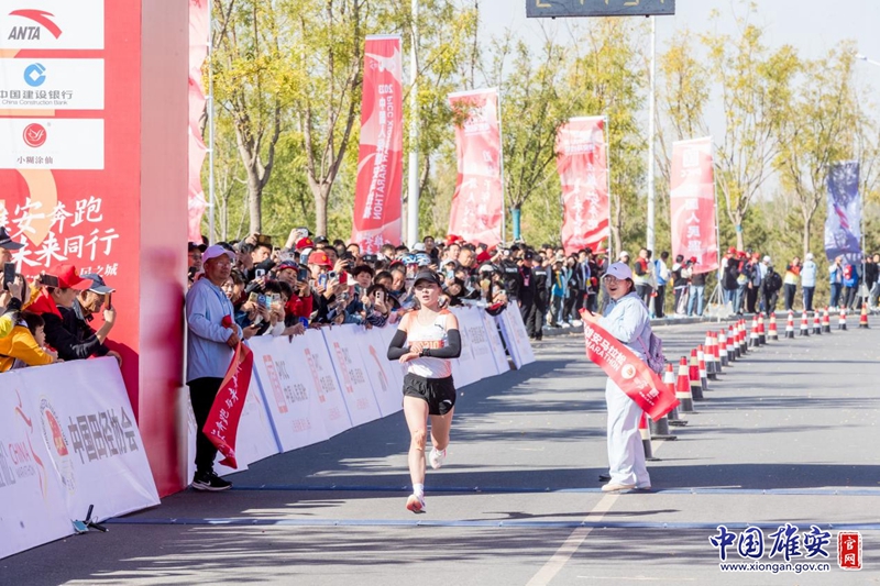 马拉松女子组冠军秦韩钰撞线瞬间。中国雄安官网牛思佳 摄