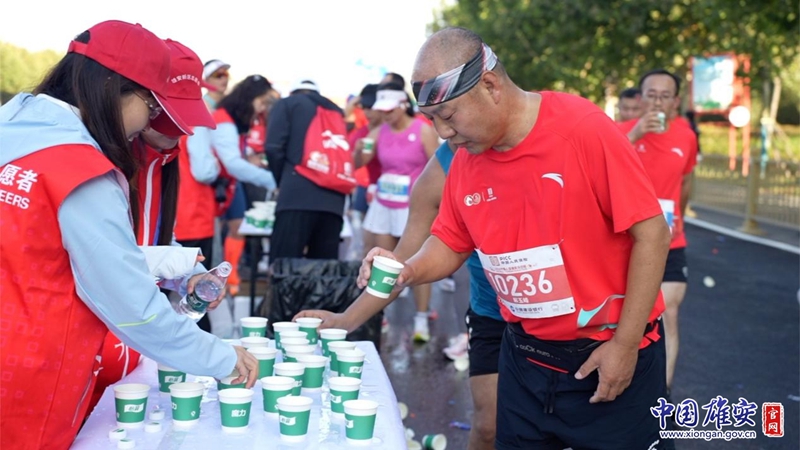 志愿服务人员为运动员提供饮水。中国雄安官网牛思佳 摄