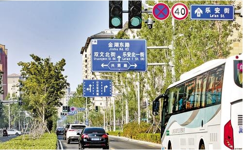 乐安街东至渥城北路、西至甘棠路路段,全程大约3公里,中间需要经过十几个交通信号灯。记者发现,每到一个路口,交通信号灯就变为绿灯,走完整个路段,只用了4分钟左右的时间。