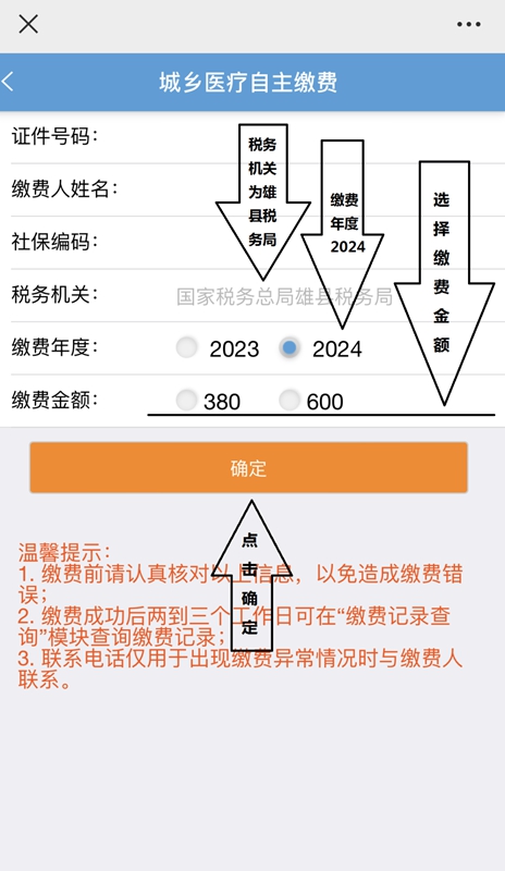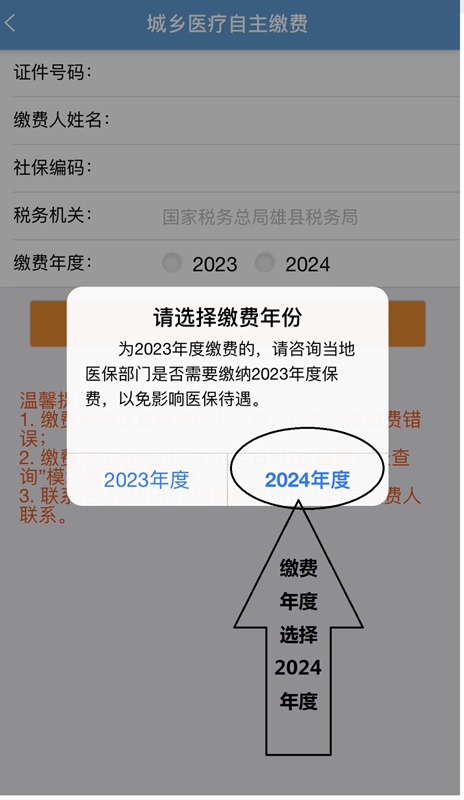 微信搜索“河北税务”,在业务办理→社保缴纳→个人社保缴费→输入证件号码→查询→城乡居民医疗保险→去缴费→选择缴费年份2024年度→点击缴费。