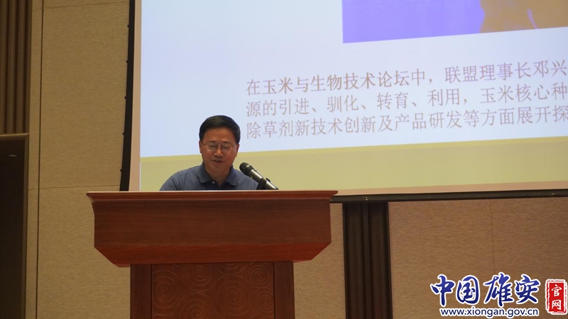论坛聚焦我国现代农业、前沿农业生物技术、食品安全等领域开展多方面的研讨和交流。国家现代农业与食品前沿产业技术创新战略联盟理事长、美国科学院院士、北京大学现代农业研究院院长邓兴旺,联盟副理事长兼秘书长、北京大学现代农业研究院副院长张兴平等专家学者参加此次活动,雄安新区党工委副书记、管委会副主任李涛出席活动并致辞。