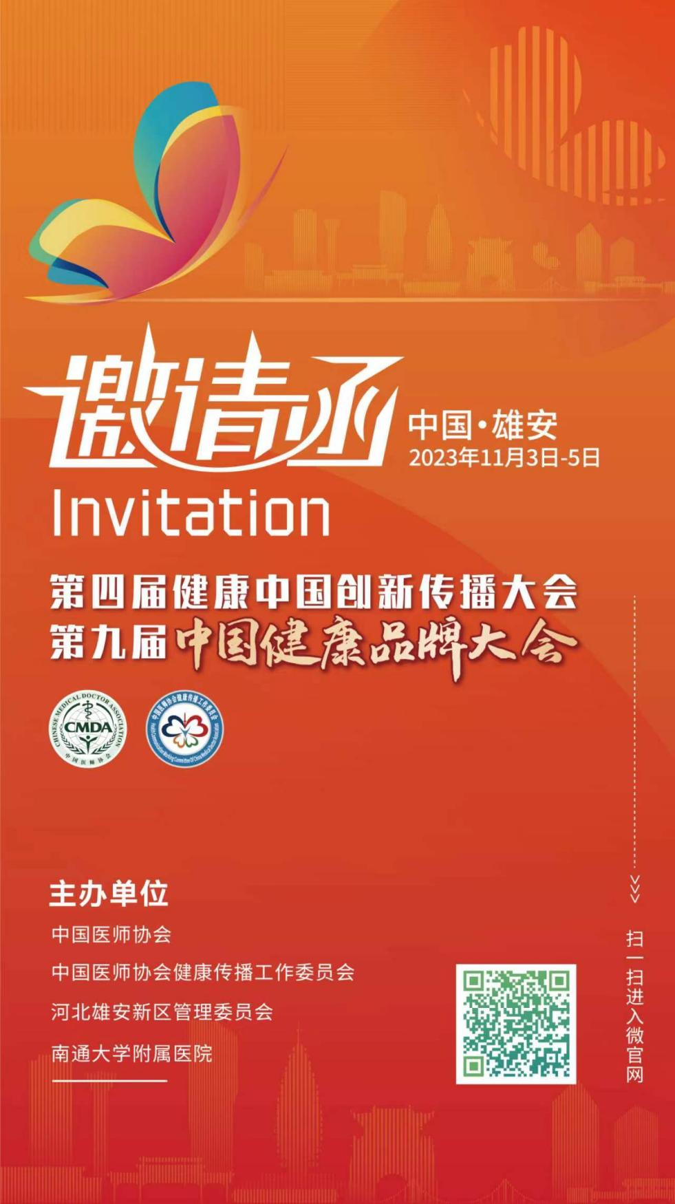 中国雄安官网10月19日电(通讯员王耀 吴丹丹)第四届健康中国创新传播大会暨第九届中国健康品牌大会是中国医师协会健康传播工作委员会年度工作会,更是健康传播领域的业界盛会,定于11月3-5日在雄安新区召开。由中国医师协会、中国医师协会健康传播工作委员会、河北雄安新区管理委员会、南通大学附属医院主办。