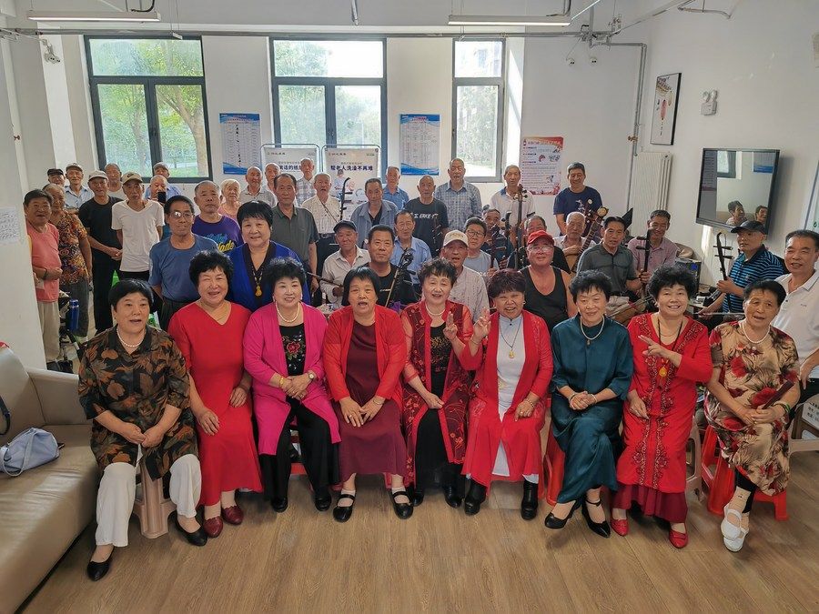 9月17日,河北雄安新区南文社区养老驿站的老人们正在排练河北梆子戏。新华社记者朱绍斌 摄