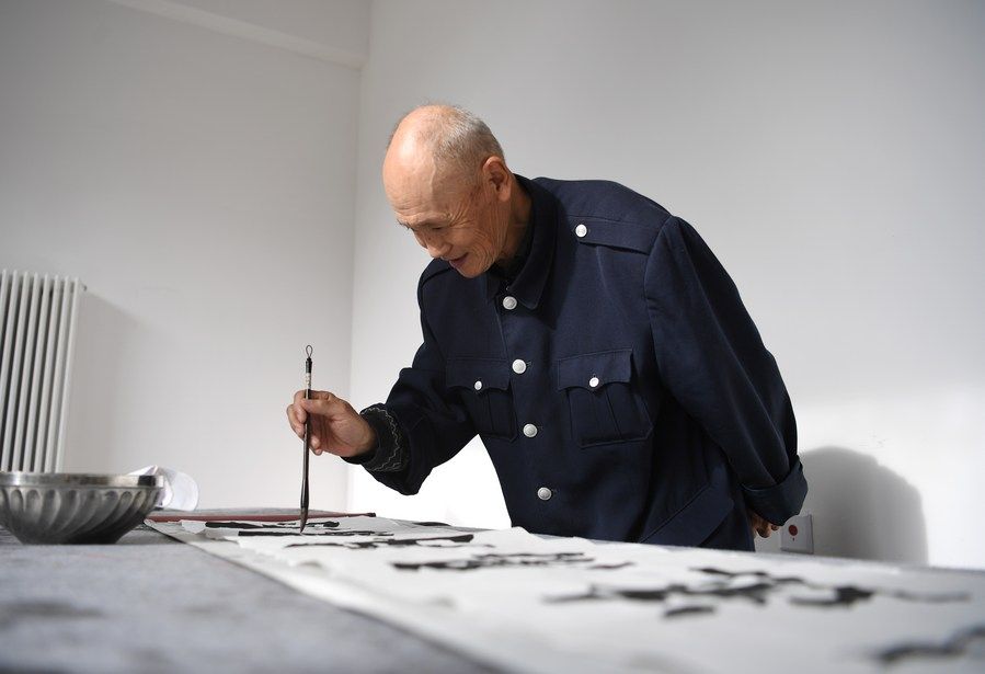 河北雄安新区容东片区南文营社区居民在社区养老驿站活动室练习书法(5月23日摄)。新华社记者朱旭东 摄