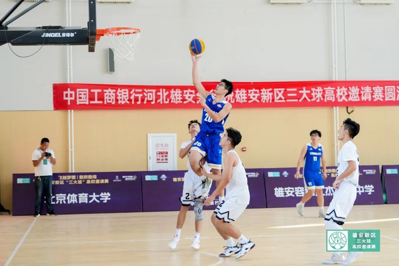 中国雄安官网10月24日电 为深入贯彻《体育强国建设纲要》《关于深化体教融合促进青少年健康发展的意见》,全面落实全民健身、健康中国国家战略,探索“三大球”发展道路,新区切实满足高校学生对体育运动的需求,促进形成疏解高校与省内高校交流合作机制,提升社会参与、市场运作的高校运动会新格局。10月22日,由雄安高校协同创新联盟指导,雄安新区公共服务局、雄安新区宣传网信局主办,河北雄安新区篮球协会承办,北京体育大学、中国工商银行河北雄安分行、雄安容和红杰初级中学、河北引航体育文化发展有限公司支持的雄安新区“三大球”高校邀请赛之三人篮球比赛在雄安容和红杰初级中学圆满落幕。