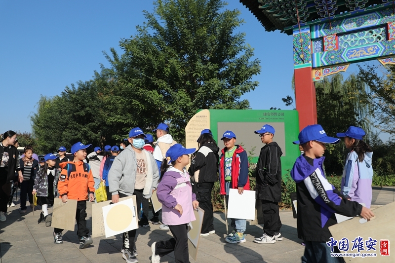 孩子们结队前往雄安郊野公园。雄安郊野公园供图