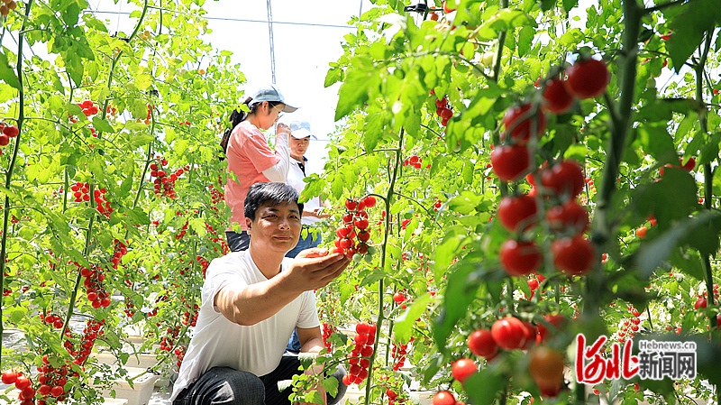 第四届中国·北方农业(蔬菜)科技创新发展大会6月8日在赵县实验基地举办。图为参展者在蔬菜大棚了解番茄长势。河北日报通讯员朱涛 摄