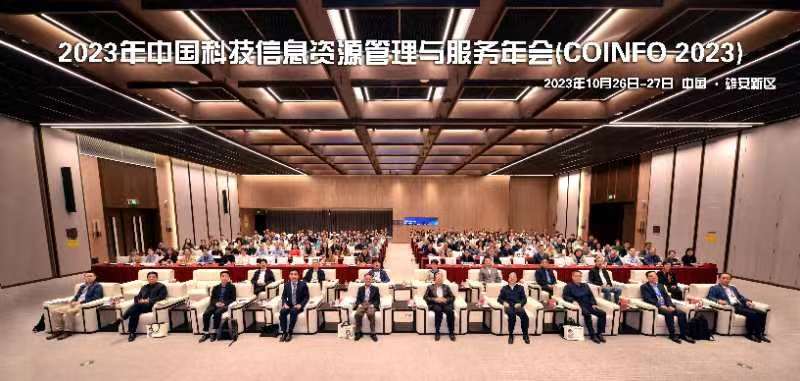 10月26日-27日,2023年中国科技信息资源管理与服务年会(COINFO 2023)在河北省雄安新区举办。大会聚焦“数智化时代的科技信息资源管理与服务”主题,以主论坛大会特邀报告、分论坛特邀报告、论文交流汇报和专家研讨会等多种形式开展。会议由中国科学技术信息研究所(以下简称“中信所”)、北京大学、武汉大学、雄安新区改革发展局、雄安新区科学园管理委员会联合主办,北京万方数据股份有限公司、中国雄安集团数字城市科技有限公司协办,来自政产学研界300多名专家和代表参加会议。