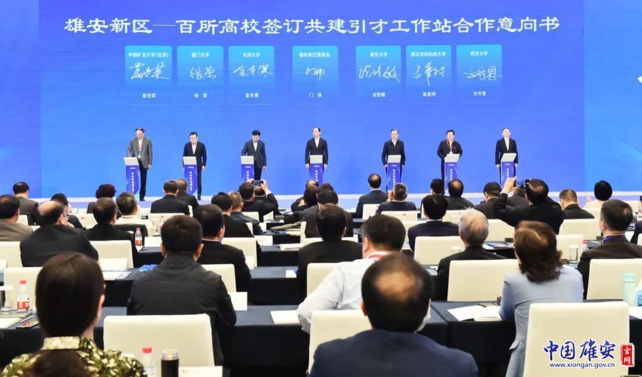 随后,北京大学、上海交通大学、北京理工大学、中国地质大学(北京)、深圳大学5位高校负责同志分别作主旨发言。新区有关负责同志介绍了雄安新区创新政策体系、产业发展政策体系并发布了23个创新应用场景需求。省人社厅有关负责同志发布了《雄安新区2023年急需紧缺人才目录》。有关领导共同为20家雄安大学生实习基地揭牌。雄安新区与150所高校签订共建引才工作站合作意向书,23个校企、校地产学研项目进行了集中签约。