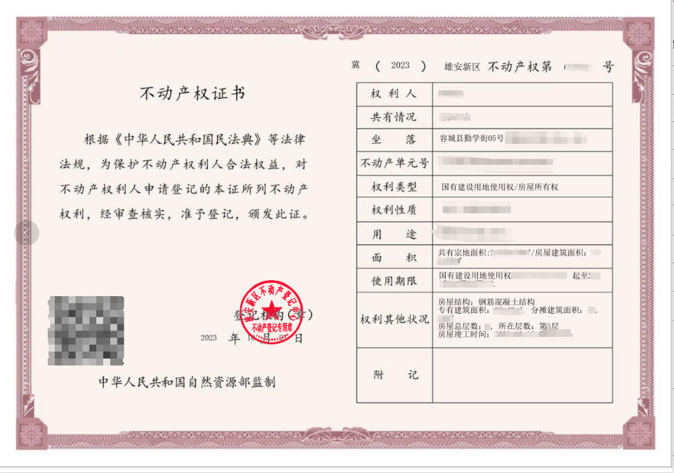 首笔预售商品房转移预告登记转本登记后电子证照。中国雄安官网发