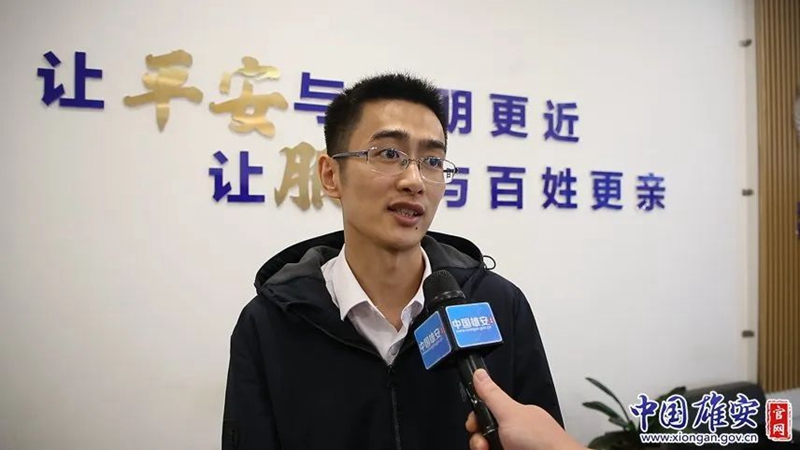 张雷给孩子办理户口后接受采访。中国雄安官网高盟 摄
