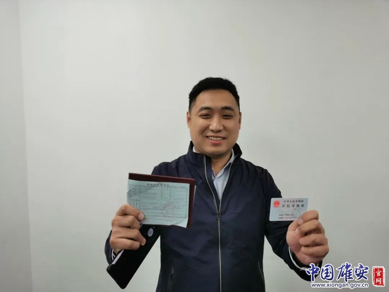吕哲文落户后,向记者展示户口页和新身份证。中国雄安官网高盟 摄