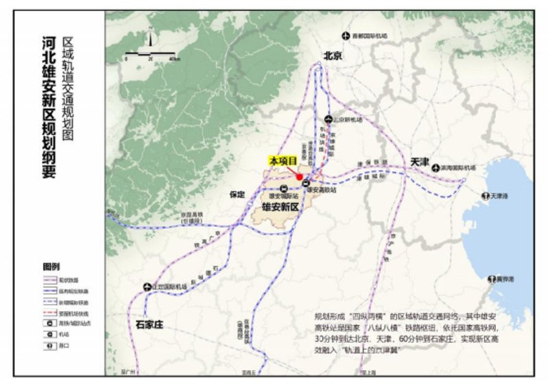 (1)交通:项目步行约5-10分钟抵达雄安高铁站,作为新区轨道交通枢纽站点,融入新区规划的“四纵两横”区域轨道交通网络,其中“四纵”为京广高铁、京港台高铁京雄-雄商段、京雄-石雄城际、新区至北京新机场快线,“两横”为津保铁路、津雄城际-京昆高铁忻雄段。未来30分钟可达北京、天津,60分钟到石家庄,形成京津冀1小时生活圈,项目对外交通便利。